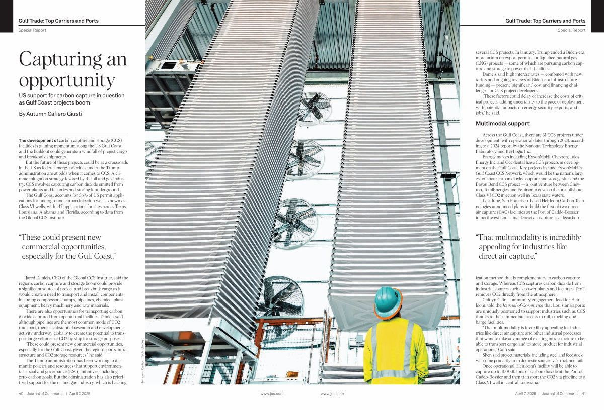 The development of carbon capture and storage( CCS) facilities is gaining momentum along the US Gulf Coast, and the buildout could generate a windfall of project cargo and breakbulk shipments.