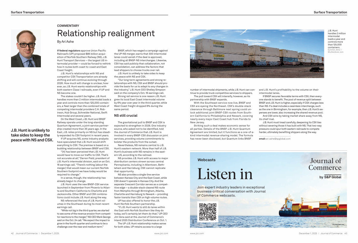 J. B. Hunt must tread carefully, deepening its CSX ties without severing those it has built with NS. That two-way pressure could spur both eastern railroads to compete harder, ultimately benefiting shippers along the way.