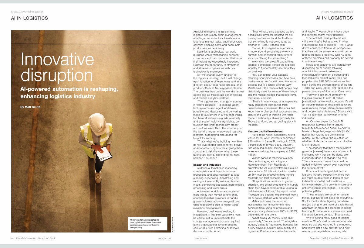 44 Journal of Commerce | December 1, 2025 www. joc. com