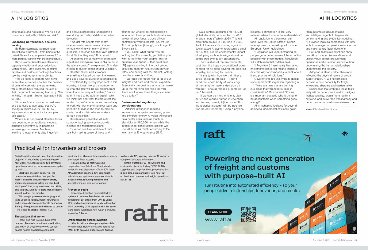 Raft and Xeneta’ s innovations show how AI can modernize workflows and unlock value across procurement, operations and customer service without undermining the human relationships underpinning the industry.