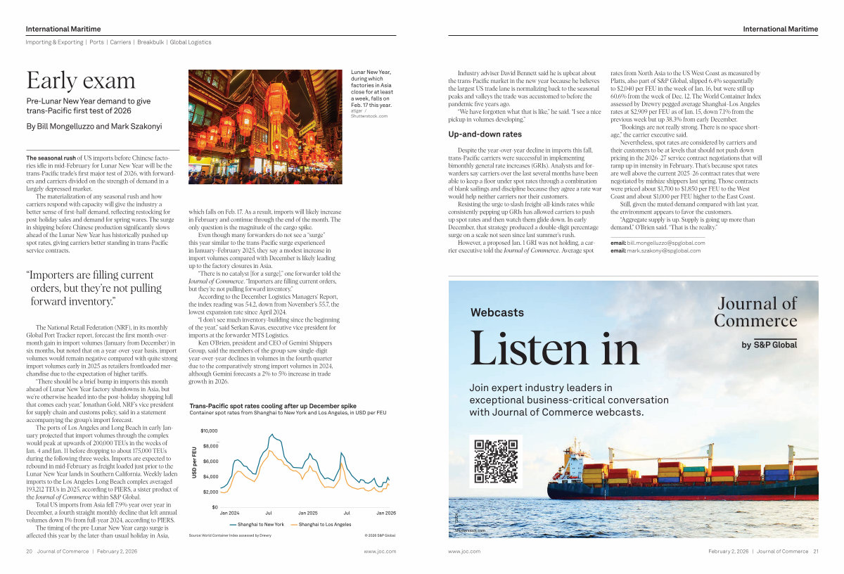 20 Journal of Commerce | February 2, 2026 www. joc. com