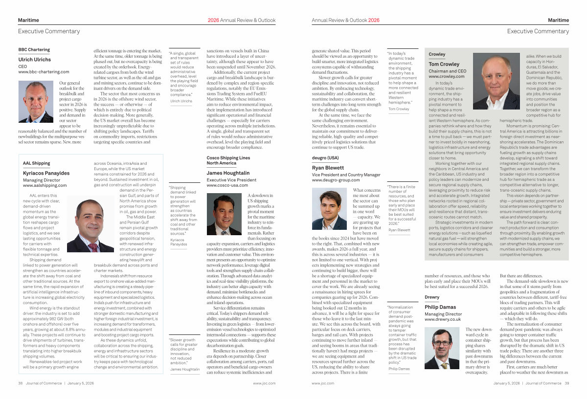AAL enters this new cycle with clear, demand-driven momentum as the global energy transition reshapes cargo flows and project logistics, and we see lasting opportunities for carriers with flexible tonnage and technical expertise.