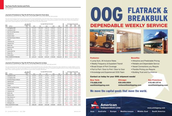 Journal of Commerce Top 15 US Ports by Exports to Asia