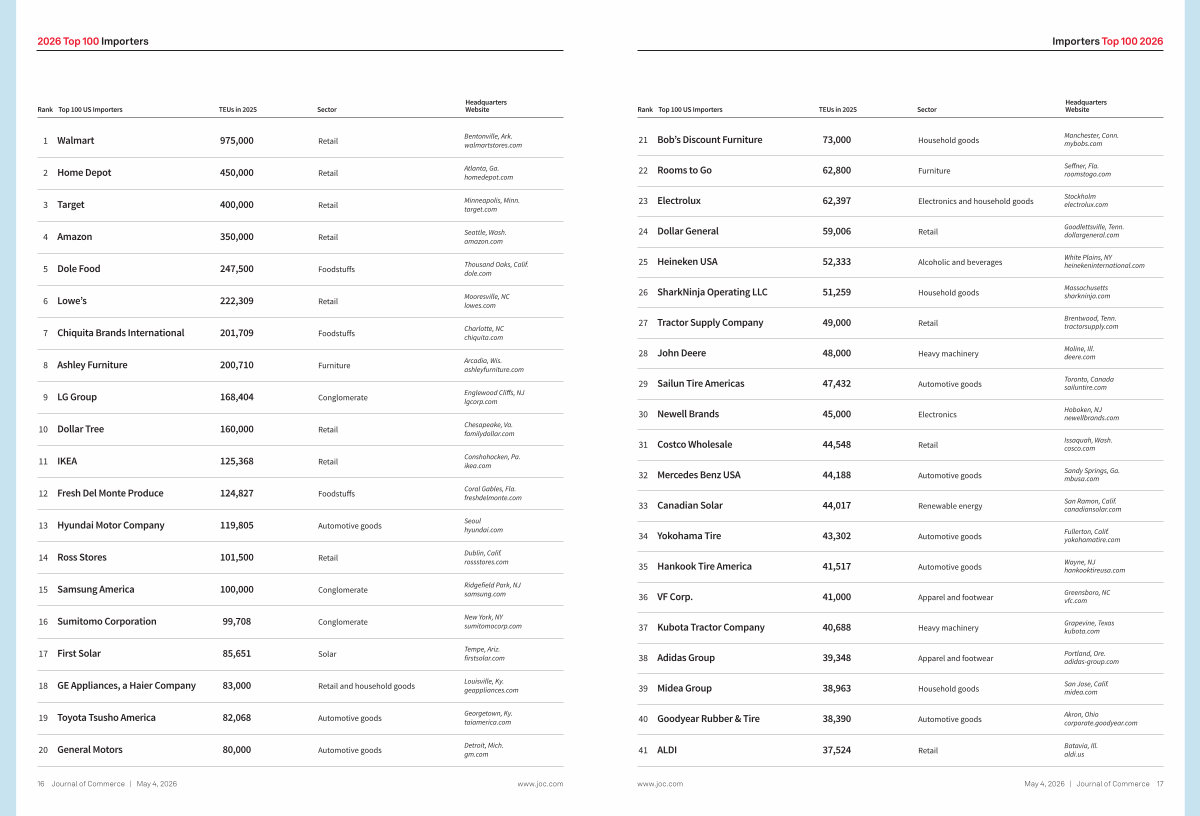 Rank Top 100 US Importers |
