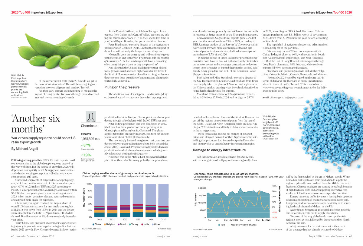 A big unknown for the resins market is the extent of the damage that has already occurred to Mideast www. joc. com May 4, 2026 | Journal of Commerce 43
