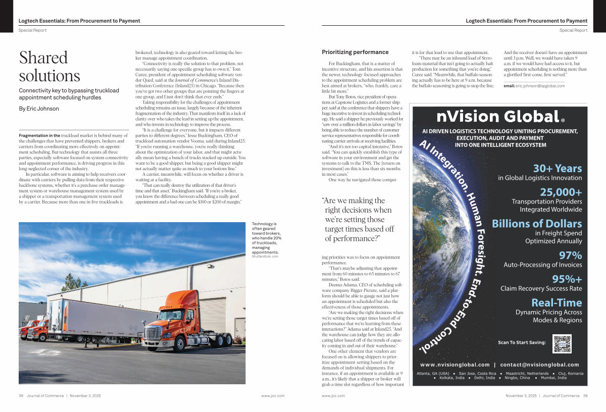 But Tony Botos, vice president of operations at Capstone Logistics and a former shipper, said at the conference that shippers have a huge incentive to invest in scheduling technology. He said a shipper he previously worked for“ saw over a million dollars in labor savings” by being able to reduce the number of customer service representatives responsible for coordinating carrier arrivals at receiving facilities.