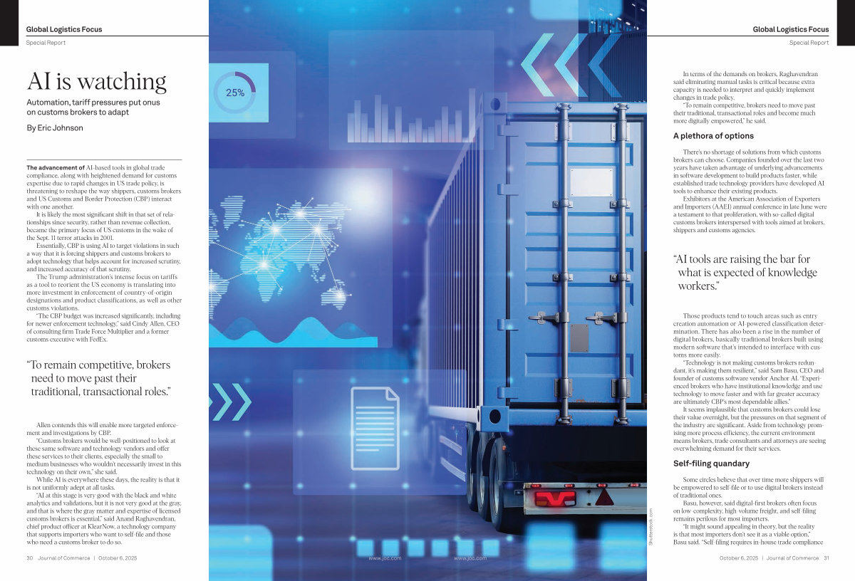 “ Technology is not making customs brokers redundant, it’ s making them resilient,” said Sam Basu, CEO and founder of customs software vendor Anchor AI.“ Experienced brokers who have institutional knowledge and use technology to move faster and with far greater accuracy are ultimately CBP’ s most dependable allies.”
