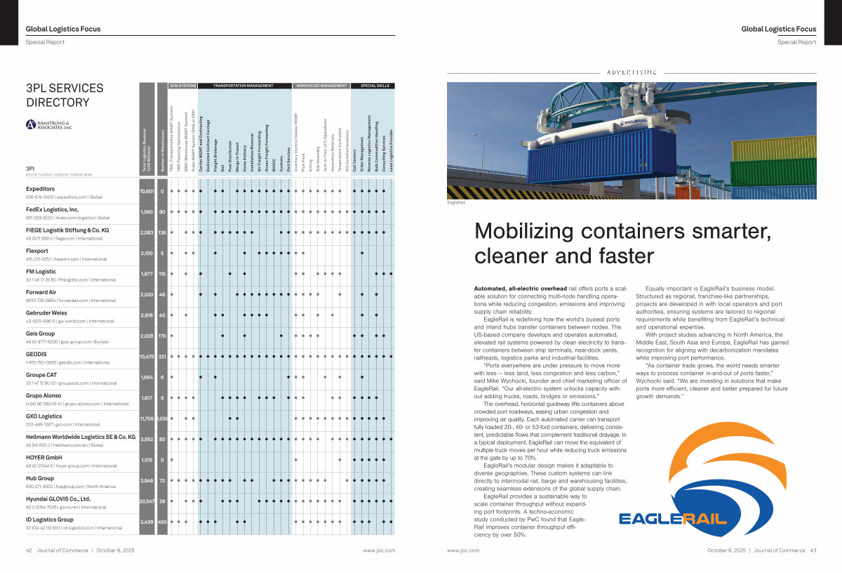 TMS( Transportation MGMT System) TMS Planning / Optimization WMS( Warehouse MGMT System) Order MGMT System( OMS or ERP) Carrier MGMT and Contracting Dedicated Contract Carriage Freight Brokerage Rail Pool Distribution Merge In Transit Home Delivery Installation / Removal Air Freight Forwarding Ocean Freight Forwarding NVOCC Customs Port Services Inventory Control / Vendor MGMT Pick / Pack Kitting Sub Assembly Just-In-Time( JIT) Operations Hazardous Materials Temperature Controlled ISO Certified locations Call Centers Order Management Reverse Logistics Management Bulk Commodities Handling Consulting Services Lead Logistics Provider